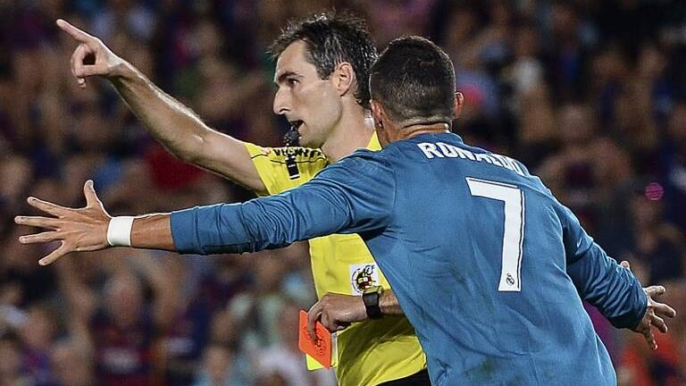 Cinco partidos. El Comité de Apelación de la Real Federación Española de Fútbol (RFEF) no dio su brazo a torcer y este miércoles ratificó la sanción en contra de Cristiano Ronaldo, expulsado en el Clásico del domingo contra el Barcelona y acusado de empujar al árbitro Ricardo de Burgos Bengoetxea, luego de que este le mostrara la tarjeta roja.