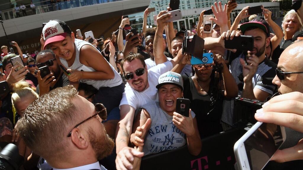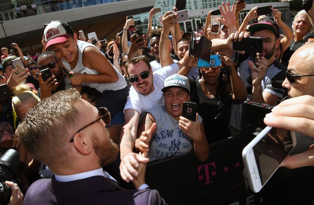 Durante el arribo de McGregor a la Plaza Toshiba su equipo coincidió con el de Mayweather mientras éste se retiraba del lugar, generando un conato de trifulca que fue controlado rápidamente, en medio de insultos entre los dos peleadores.