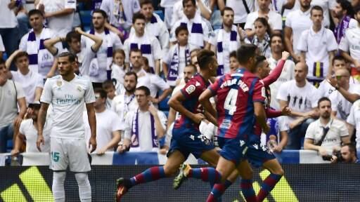 El Real Madrid tropezó este sábado en su campo con el Levante (1-1), en la tercera jornada de la Liga española, fallando en su asalto al liderato liguero, en un partido que acabó con 10 por la expulsión de Marcelo (89).