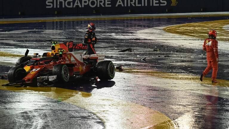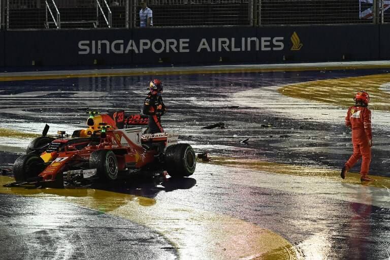 El británico Lewis Hamilton (Mercedes) fue el gran beneficiado de un fuerte choque que involucró a los Ferrari de Vettel y de Raikkonen además del Red Bull del neerlandés Max Verstappen y que afectó al McLaren del español Fernando Alonso durante la disputa del Gran Premio de Singapur, este domingo bajo la lluvia en el circuito de Marina Bay.