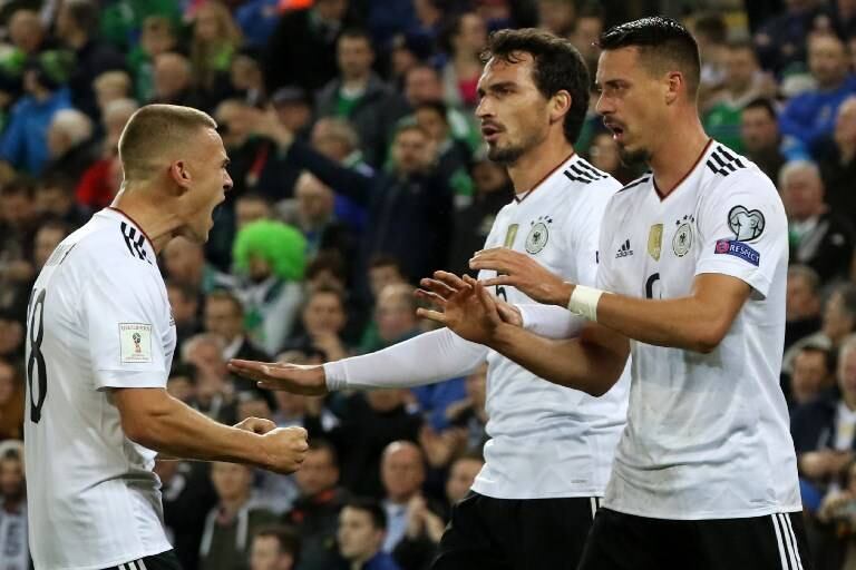 La Mannschaft, que suma pleno de victorias en el Grupo C (38 goles a favor y solo 3 en contra) alcanzando los 27 puntos, derrotó a su similar de Irlanda del Norte por un contundente 3-1, asegurando su participación en el torneo que se disputará el próximo año en tierras rusas.