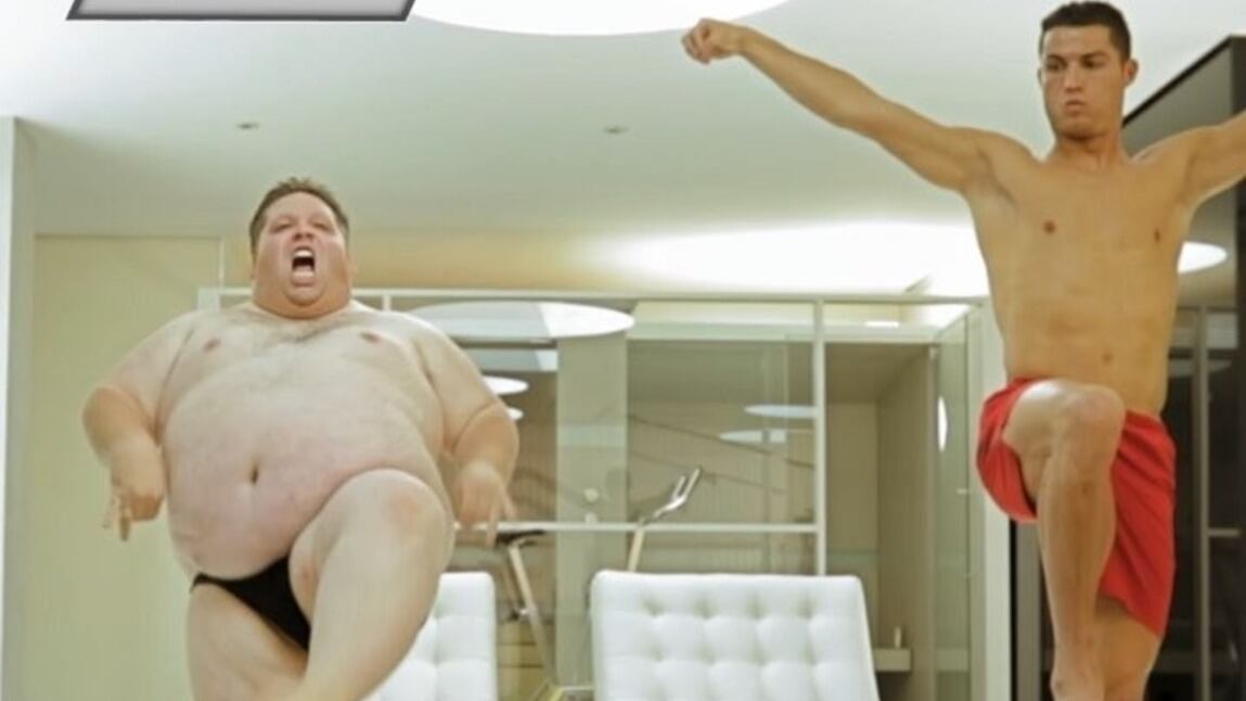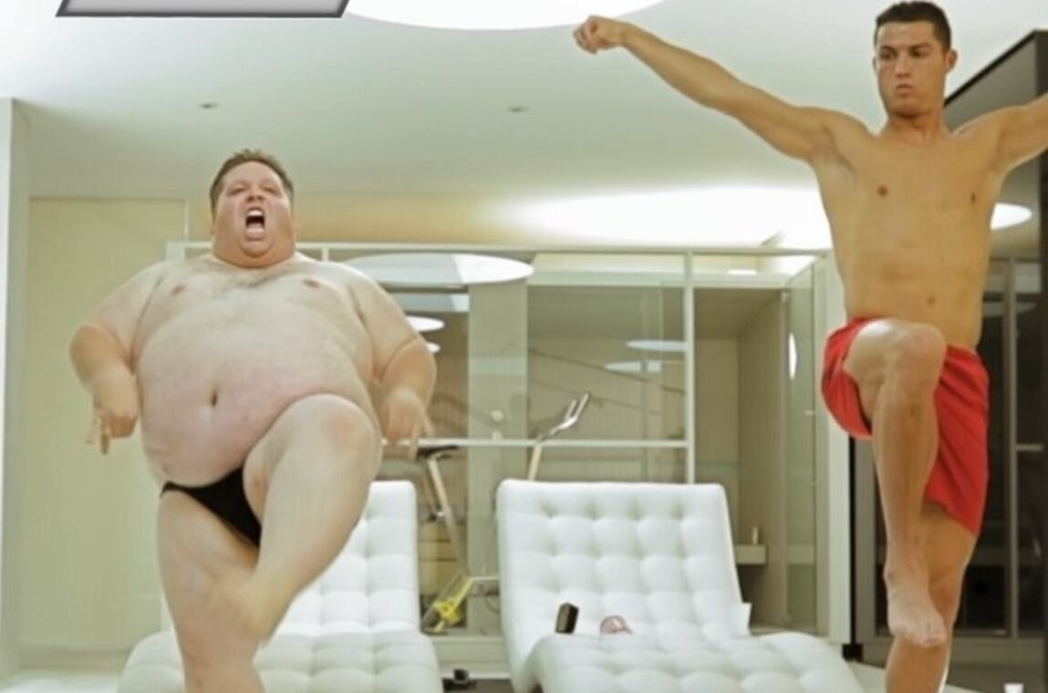 Con una diferencia física muy notoria, ambos aparecen en traje de baño a la orilla de una piscina, con la intención de iniciar el entrenamiento a cargo de Busath, comediante de 48 años, y quien le revela a CR7 sus secretos y habilidades, los ejercicios son seguidos al pie de la letra por el jugador.