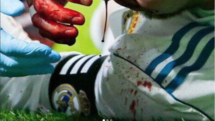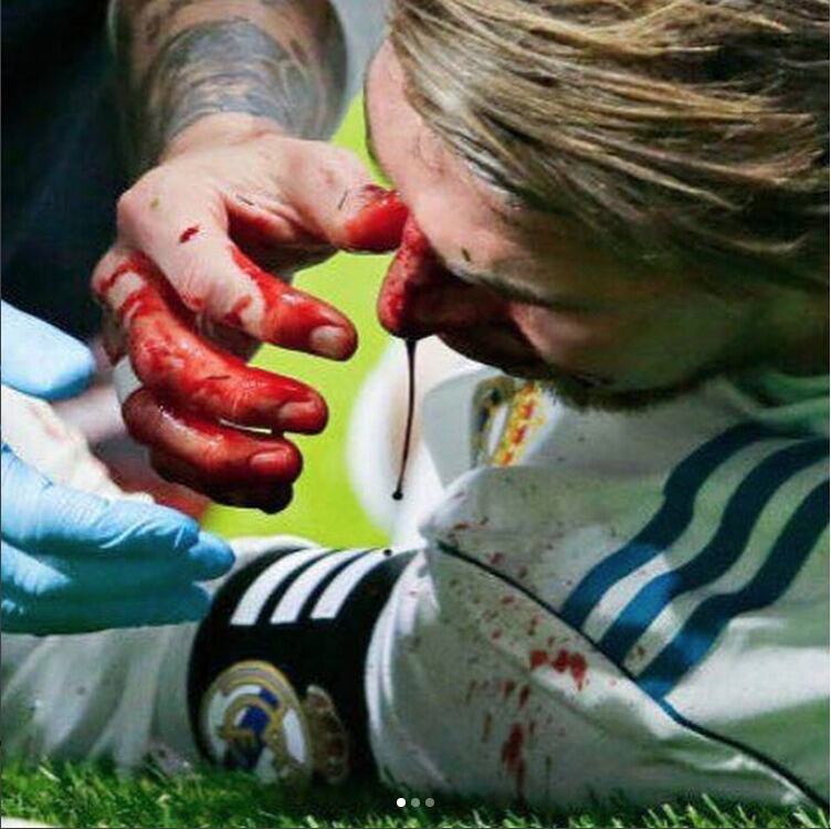 Tras este incidente, Sergio Ramos decidió publicar en su cuenta de Instagram, una de las imágenes más impactantes por un golpe dentro de la cancha.