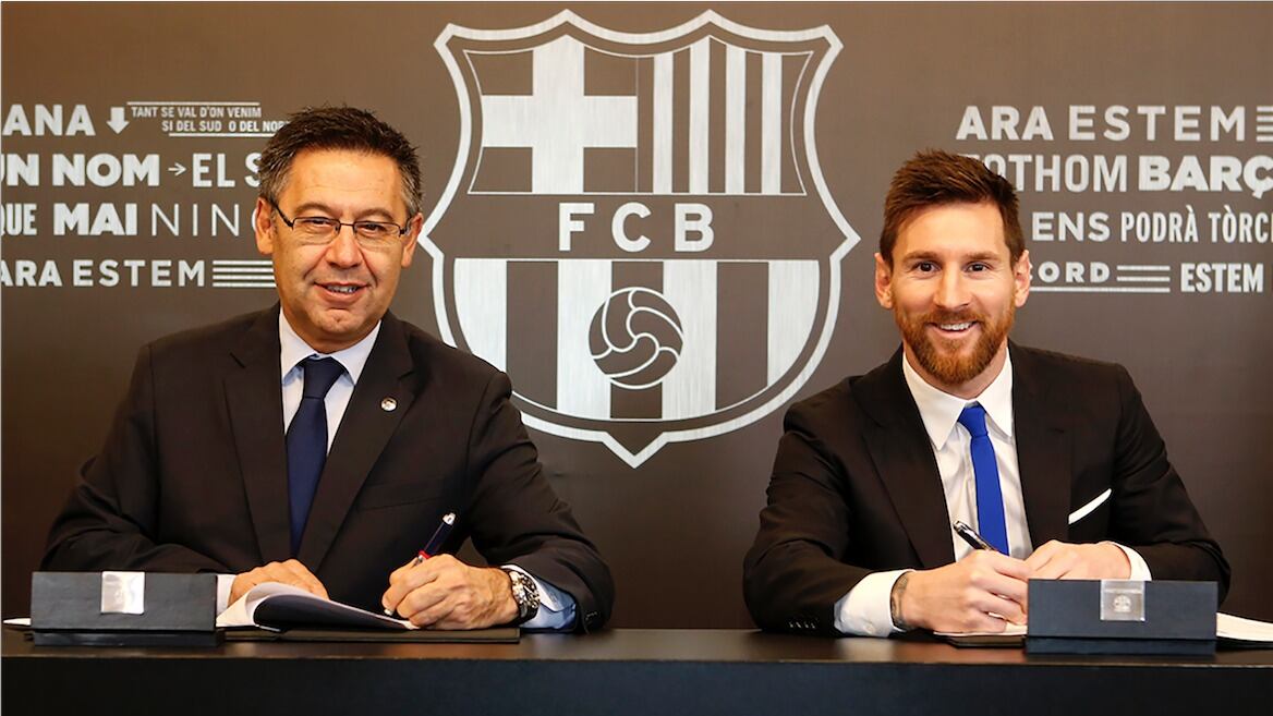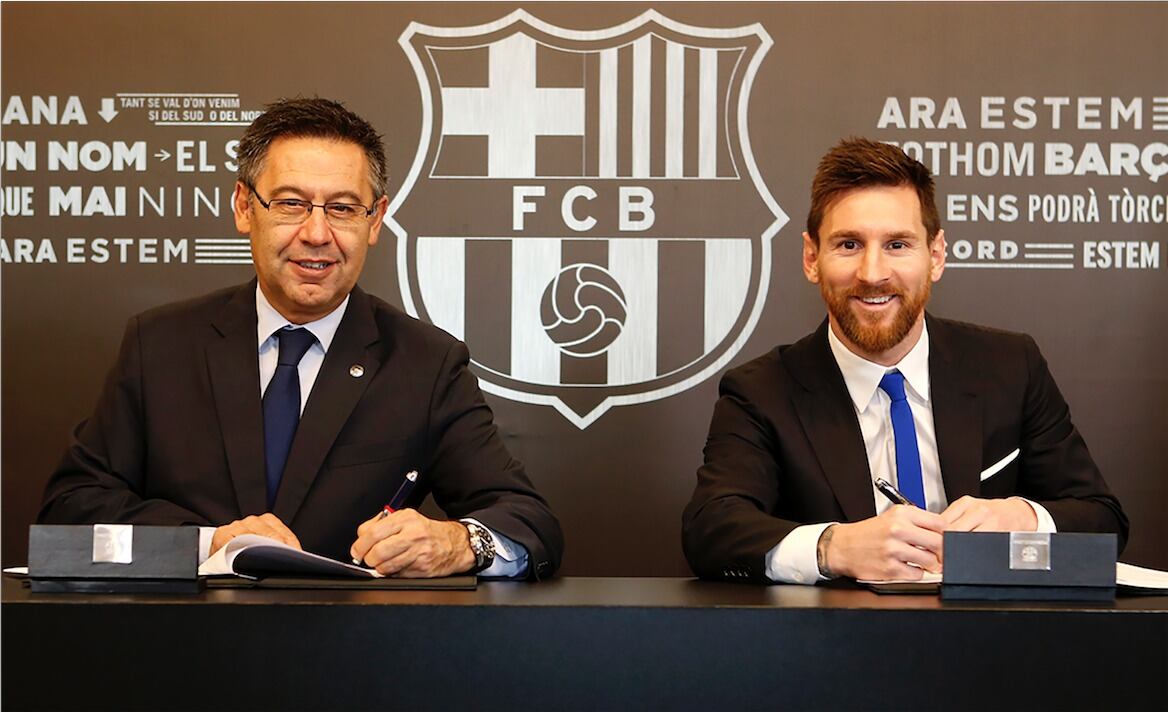 "El FC Barcelona y el jugador Lionel Messi han firmado un nuevo contrato hasta el 30 de junio 2021″, informó el Barça este sábado en un comunicado con una foto del presidente del club Josep Maria Bartomeu y Messi firmando el documento.