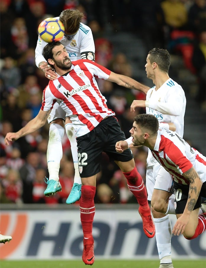 El equipo blanco terminó el partido con 10, tras la expulsión de su defensa Sergio Ramos en el minuto 86, por dar un golpe en un salto a Aritz Aduriz.