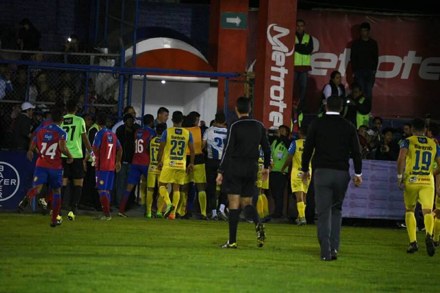 Pero el buen partido que disputaban ambos equipos se vio empañado por una trifulca que comenzó con agresiones entre Álvaro García, arquero cobanero, y William Zapata, precisamente.