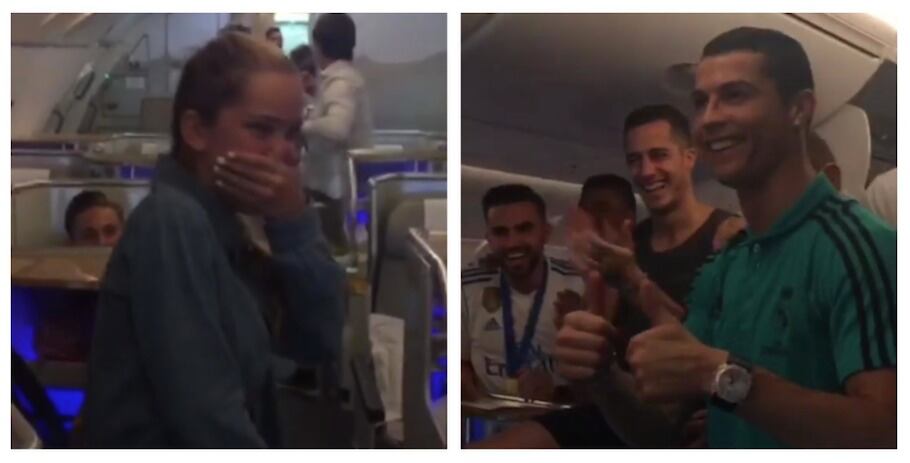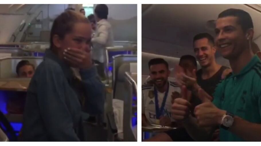 La celebración de los jugadores merengues tras haber conquistado el Mundial de Clubes pasó del césped a las alturas. Luego de levantar el trofeo de campeones del mundo, los futbolistas abordaron el avión que los llevó de regreso a Madrid, y fue allí donde recibieron una sorpresa de parte de una invitada muy especial.