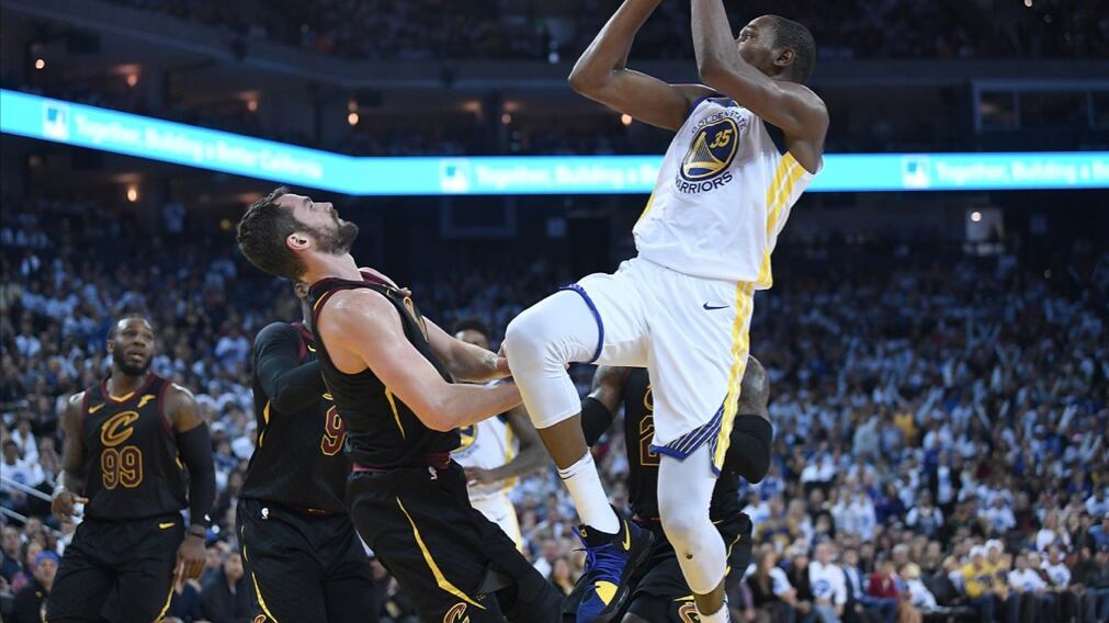 Durant, quien terminó con 25 puntos y siete rebotes, defendió muy bien ante LeBron al bloquearlo con 24,5 segundos por jugar.