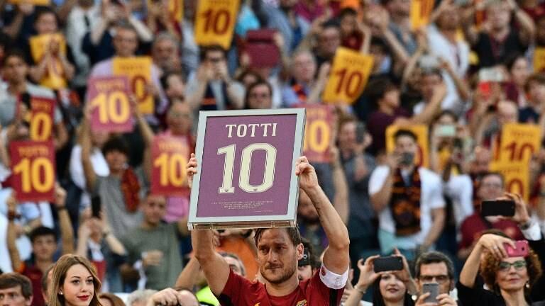 Tras 25 temporadas defendiendo la camiseta de la Roma, el histórico mediocampista italiano, Francesco Totti, decidió acabar su trayectoria como jugador profesional. Se despidió de sus aficionados con un emotivo acto organizado al finalizar el último compromiso liguero de la campaña 2016-2017.