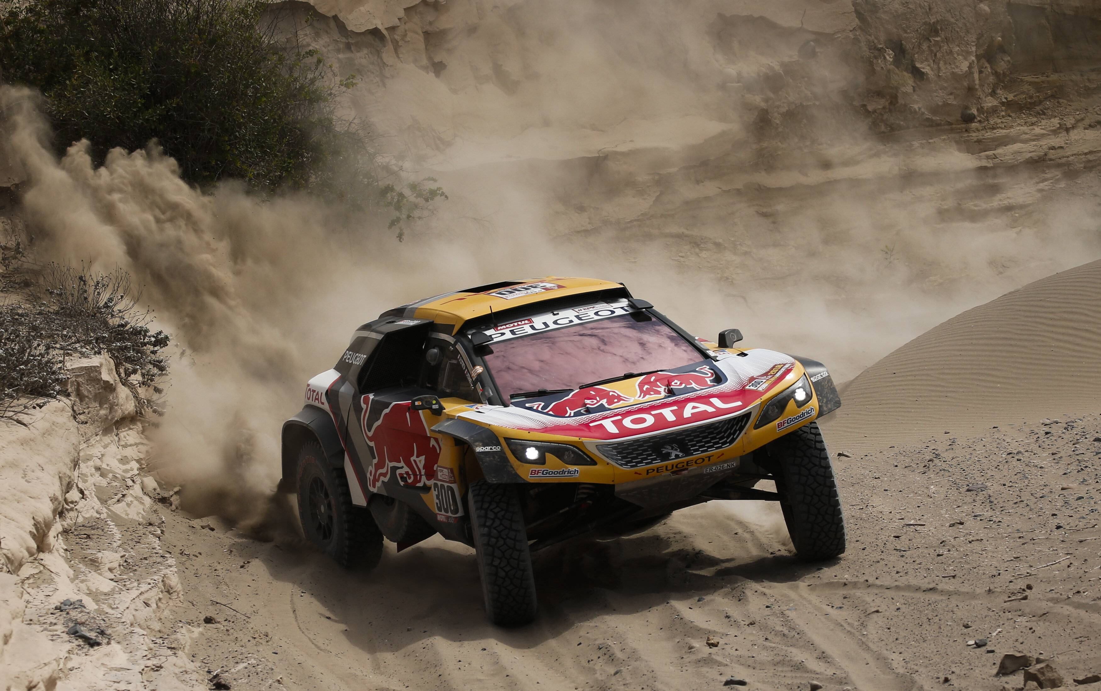 Peterhansel arribó tercero a la meta a 3:16 minutos de Loeb, este martes en la etapa disputada en las dunas en las afueras de San Juan de Marcona, Perú, la más larga sobre este tipo de terreno del Dakar 2018.
