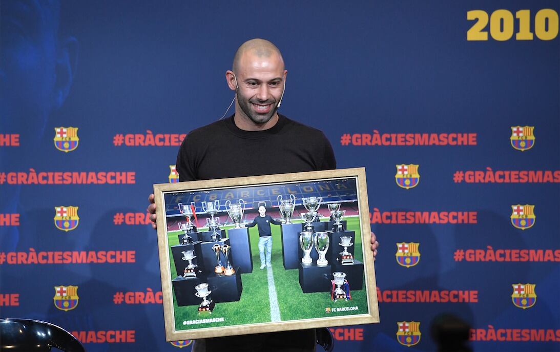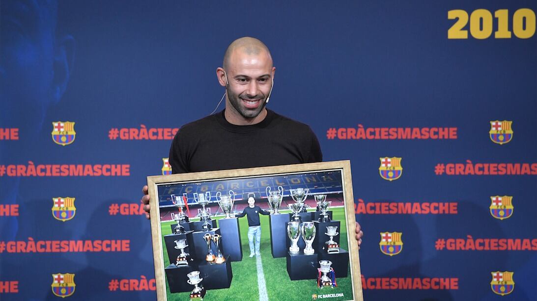 Mascherano llegó al Barcelona procedente del Liverpool en 2010 y desde entonces ha ganado 18 trofeos con los azulgranas, incluidos cuatro títulos de Liga, cuatro Copas del Rey, tres Supercopas de España, dos Ligas de Campeones, dos Supercopas de Europa y dos Mundiales de Clubes.