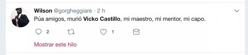 “Púa amigos, murió Vicko Castillo, mi maestro, mi mentor, mi capo”, expuso uno de sus seguidores en Twitter.