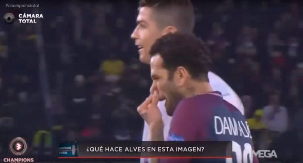 Durante un tiro de esquina, se sacó mocos con la mano izquierda y se limpió la mano con la manga del goleador, algo de lo que Cristiano no se dio cuenta. Sin embargo, el gesto de Alves fue captado por la televisión española.