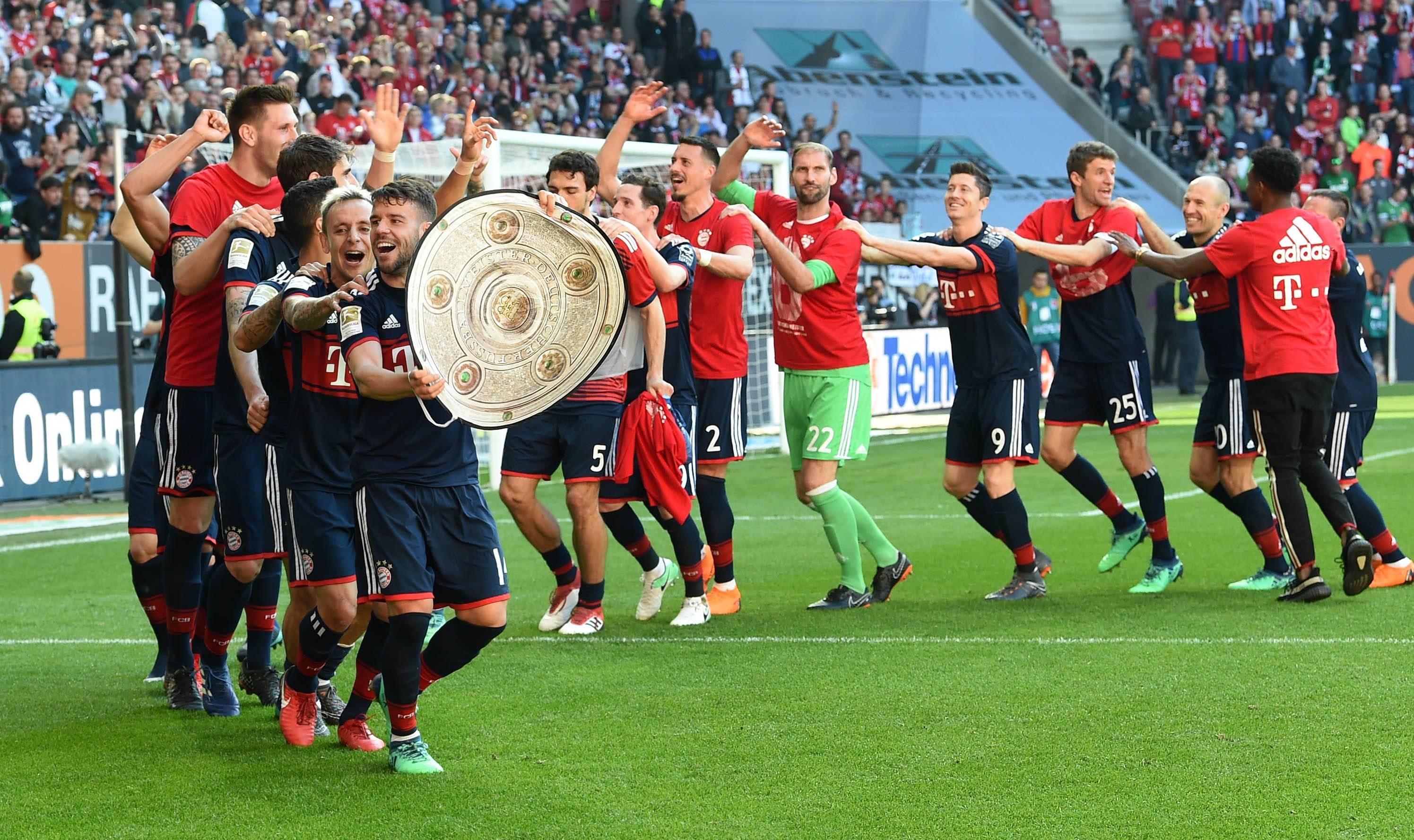 El Bayern de Múnich se proclamó campeón de Alemania por sexta vez consecutiva al vencer este sábado al Augsburgo (11) por 4-1, con un tanto del colombiano James Rodríguez, y mantiene sus opciones de conquistar por segunda vez el triplete.