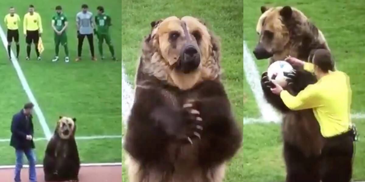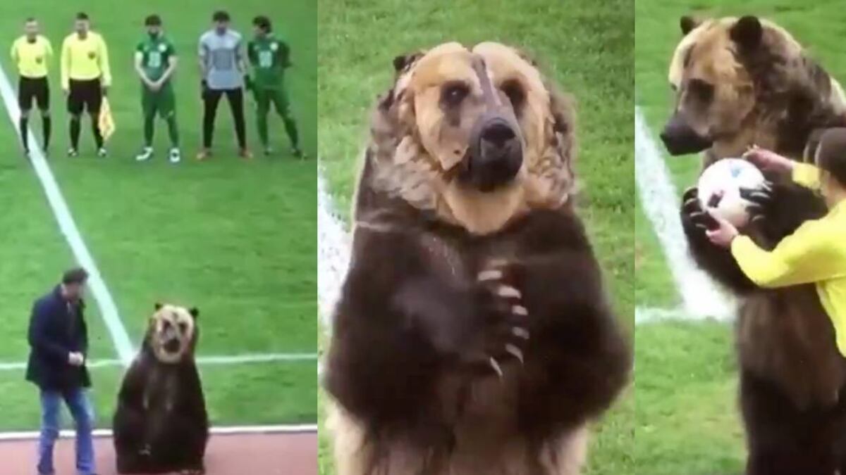 Antes de que se diera el pitido inicial del partido entre el Masjoek y Angoesjt (0-3), un oso sorprendió a los presentes cuando ingresó al terreno de juego para iniciar un acto sin precedentes.