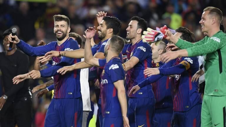 Tras finalizado el clásico contra el Madrid y después de celebrar junto a su afición el título de Liga obtenido la semana pasada, el cuerpo técnico del FC Barcelona le hizo pasillo a sus jugadores ante la negativa del conjunto blanco.
