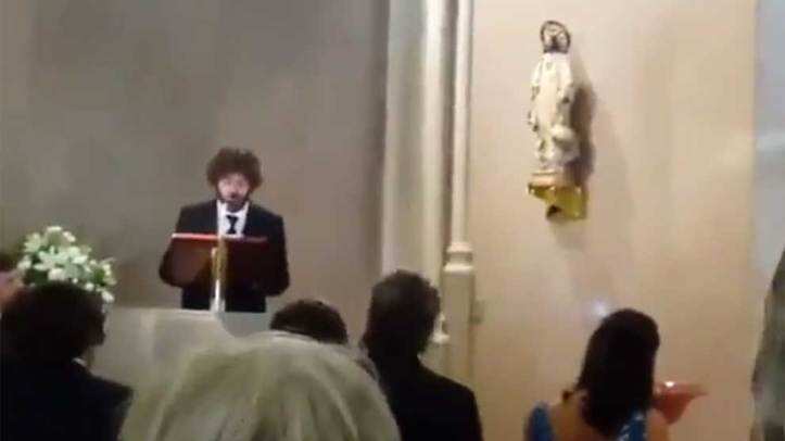 Sin embargo, al final de su petición, agregó: “Por último ilumines a Lionel Messi para que el año que viene volvamos con Copa, oremos”, desatando la risa de los presentes, incluyendo los novios y el sacerdote que precedía la boda.