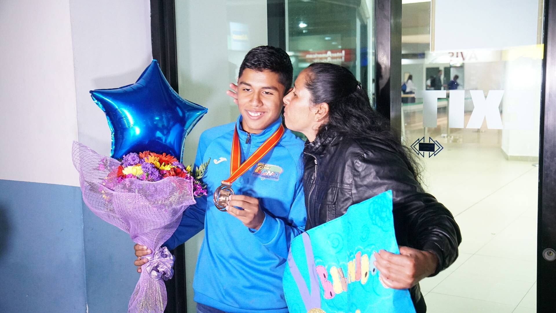 Un momento especial lo esperaba cuando se encontró con su madre Claudia Patricia Ortiz Flores, quien lo recibió en forma cariñosa y con mucho orgullo luego de su éxito en el circuito.