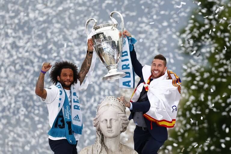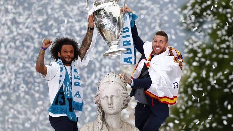 Junto al brasileño Marcelo, Ramos cargó el trofeo por un puente instalado sobre la fuente de la plaza y envolvió a la estatua de la diosa Cibeles con una bandera española. El capitán merengue también le colgó una bufanda del equipo, lo que generó una ovación de los presentes, mientras se entonaba la canción “We Are The Champions”, del grupo Queen.