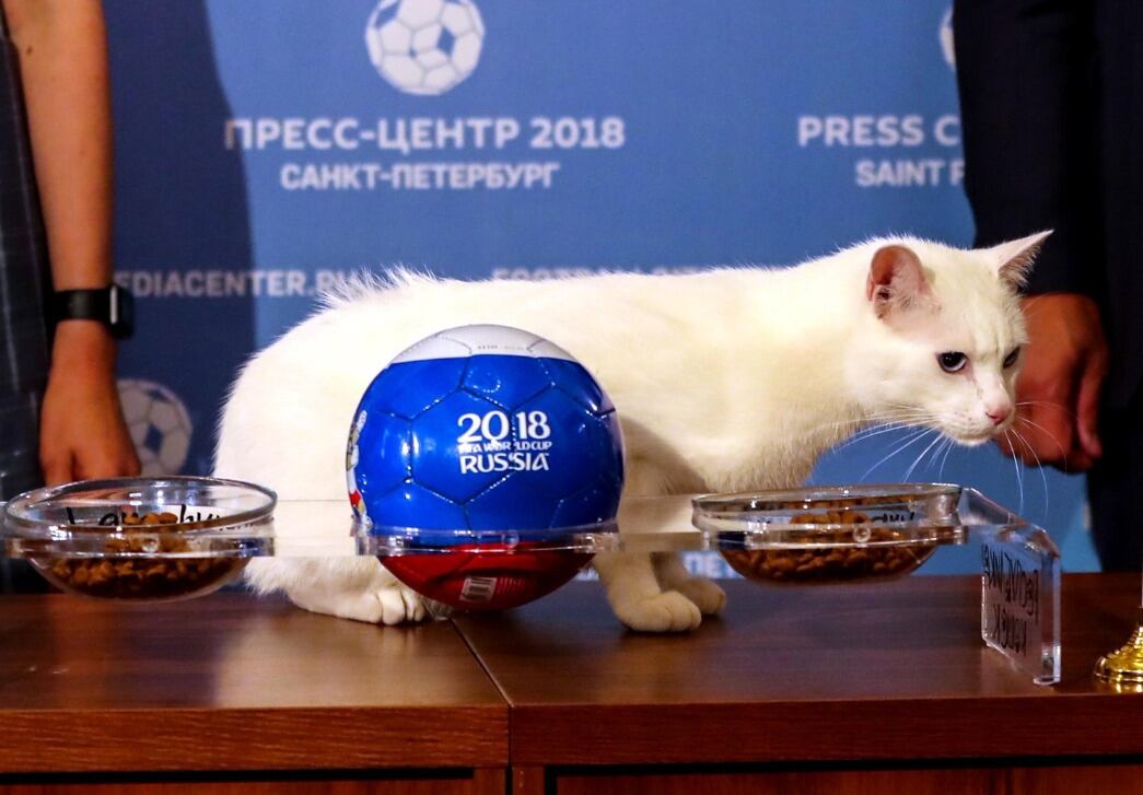 El minino blanco y sordo pretende así, seguir los pasos de Paul, que en el Mundial de 2010 acertó el 100% de sus predicciones. Aquiles no quiere quedarse atrás, y hace algunas horas dio su pronóstico para el juego entre el anfitrión Rusia y Arabia Saudí, con el que se sube el telón de la Copa del Mundo.