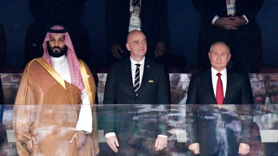 Fue entonces cuando las cámaras se fijaron en el palco del estadio Luzhnikí de Moscú, en donde se encontraba Putin, el presidente de la FIFA, Gianni Infantino, y Salman, príncipe heredero de Arabia Saudita.