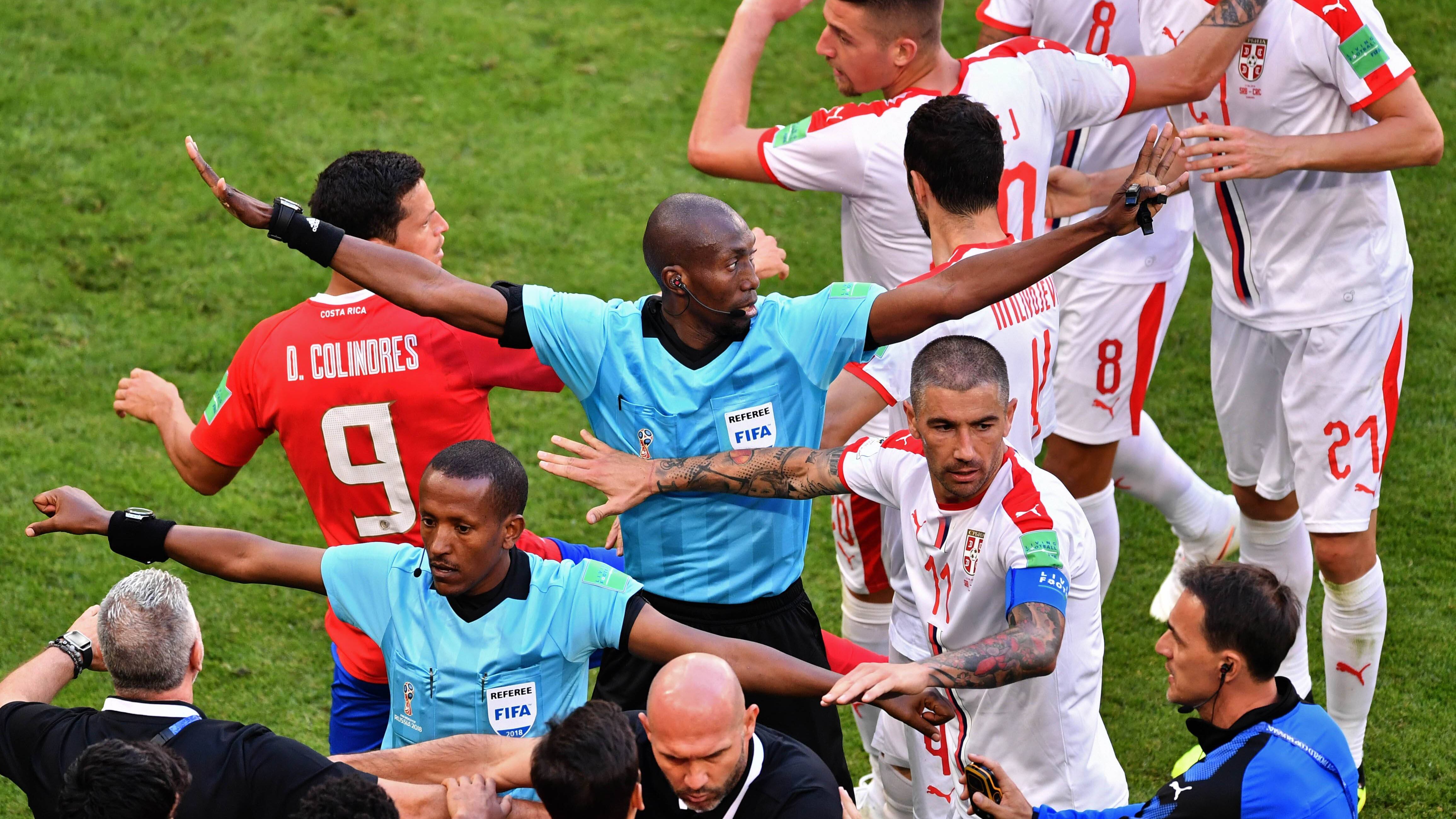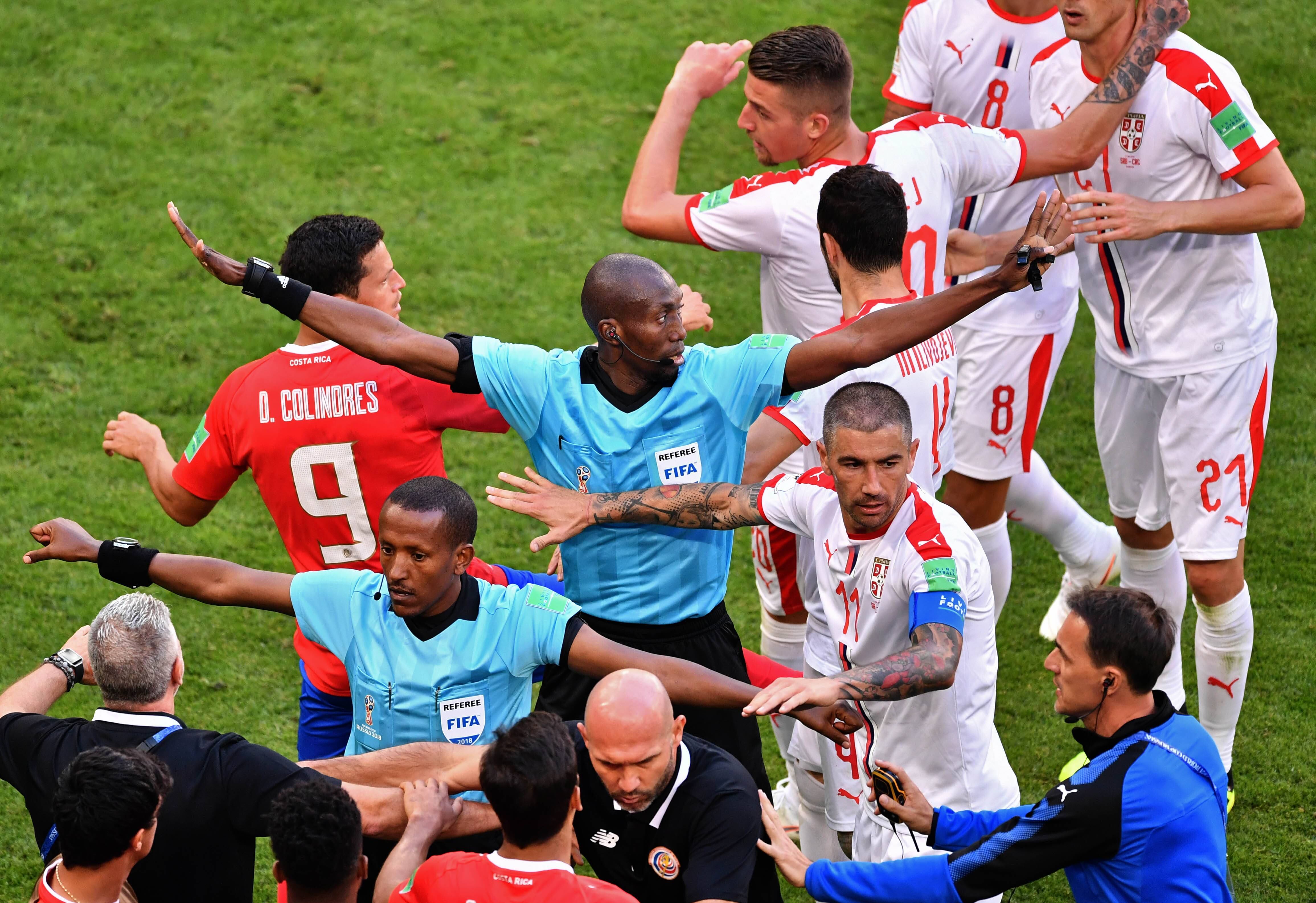 Esto luego cuando ya ganada el equipo serbio 1-0, y al minuto 93 el jugador Nemenja Matic intercambió empujones con el asistente técnico de los ticos Luis Marín y otros jugadores de la banca tica luego que el centroamericano le obstaculizara el camino cuando este iba a tomar el balón en un saque de banda.