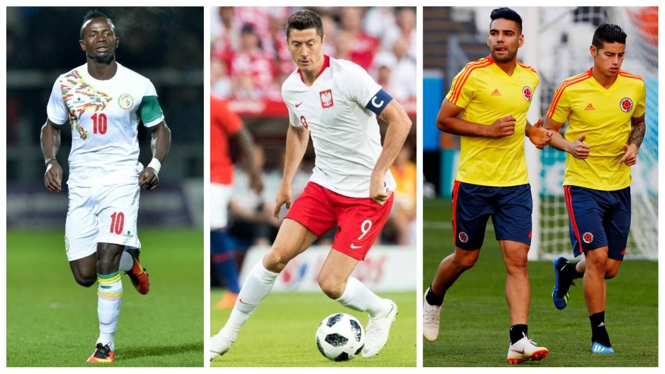 El polaco Lewandowski y el senegalés Mané se enfrentan entre sí en la primera jornada del Grupo H, donde Colombia se mide a Japón, en el que será el debut de Radamel Falcao en un Mundial.