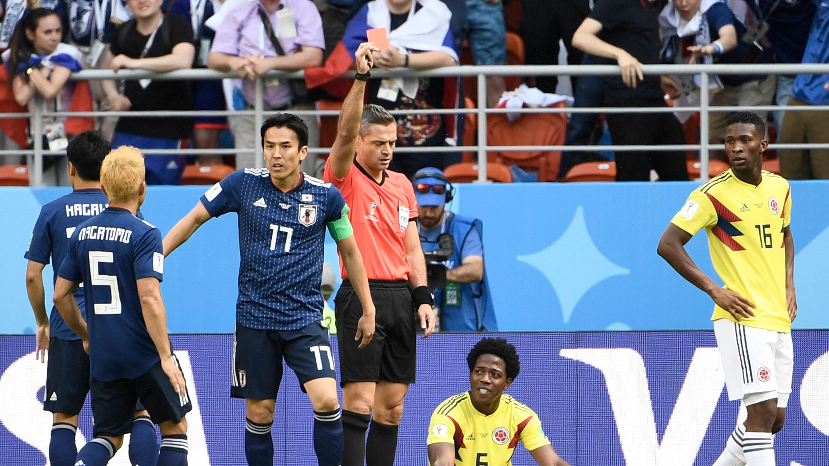 El jugador colombiano Carlos Sánchez se convirtió el primer jugador en ser expulsado en la presente Copa del Mundo, luego de cortar con el brazo la trayectoria del balón dentro del área cuando se dirigía al fondo de la red. Tras ver la cartulina roja, Sánchez entró en los registros históricos en los mundiales.