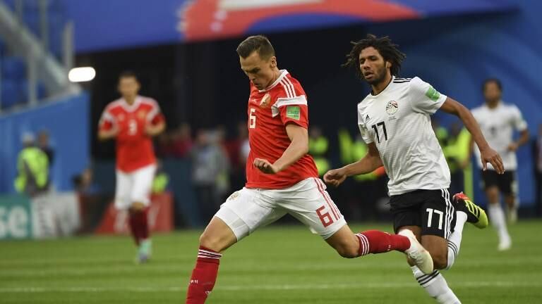 Solo había transcurrido un minuto del segundo tiempo, cuando el egipcio Ahmed Fathy desvió el balón hacia su propia portería para adelantar en el marcador a los rusos.
