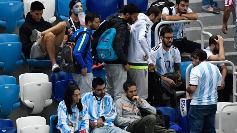 El video fue captado durante los minutos finales de la derrota por 3-0 del equipo sudamericano en el estadio Nizhni Novgorod.