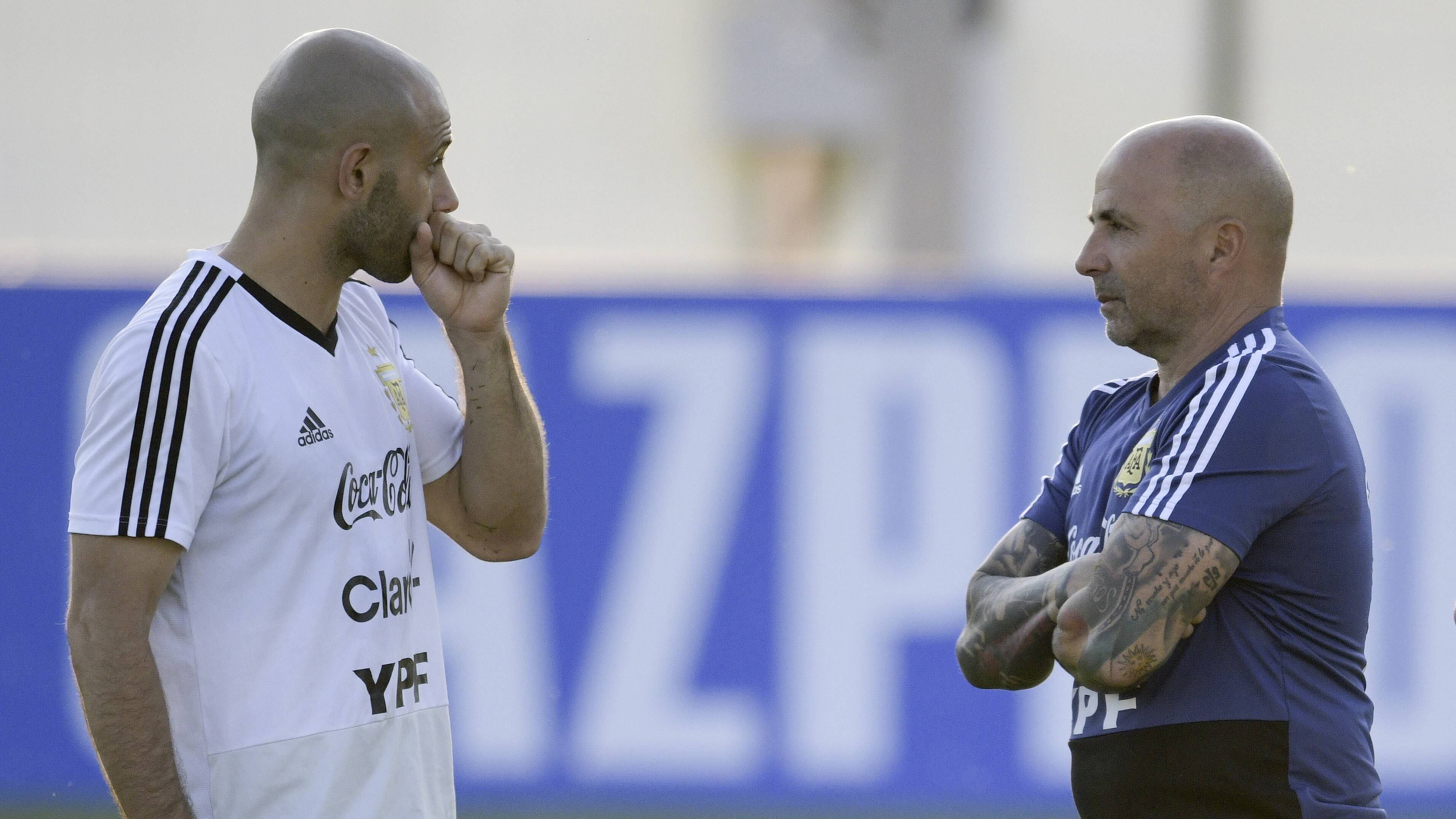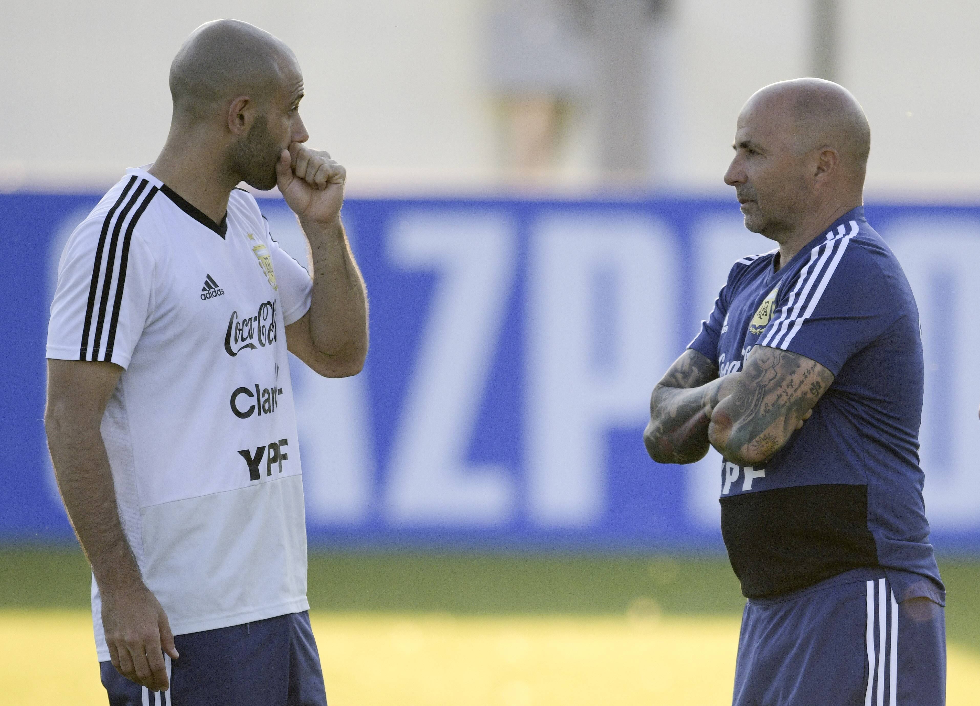 Y para terminar con los rumores el centrocampista Javier Mascherano, aseguró este domingo en conferencia de prensa que la relación del equipo con Jorge Sampaoli "es totalmente normal".