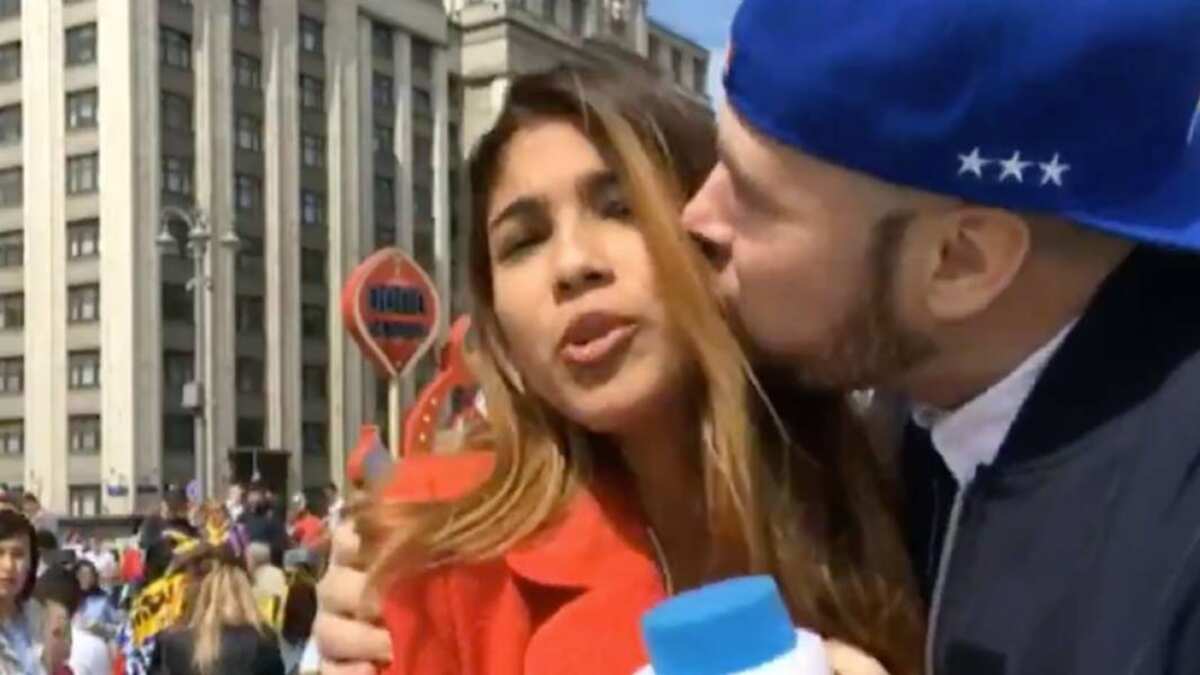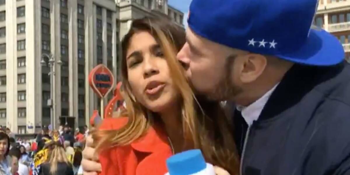 Durante una transmisión en vivo antes del partido de la selección nacional rusa, Ruslan corrió hacia la periodista, la besó en la mejilla, gritó "¡Rusia es la campeona!" y huyó. El fan también abrazó a la periodista, y con su mano izquierda tocó a la mujer en el busto.