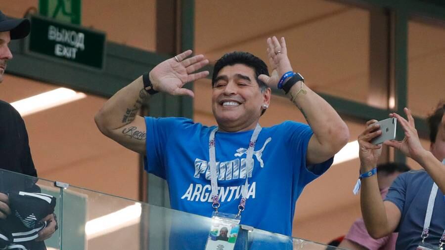 La leyenda del futbol argentino fue protagonista de varias postales penosas en uno de los palcos del Saint Petersburg, especialmente cuando la albiceleste anotó el segundo gol (2-1) ante Nigeria y que a la postre le daría la clasificación a los octavos de final de Rusia 2018.