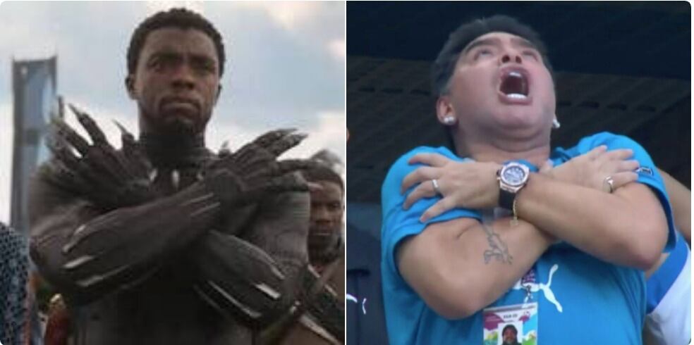 Maradona fue comparado con personajes como “Wolverine”, “Ralph Wiggum (de los Simpson)”, o “Pantera Negra”, todo por su particular forma de celebrar los goles de Argentina.
