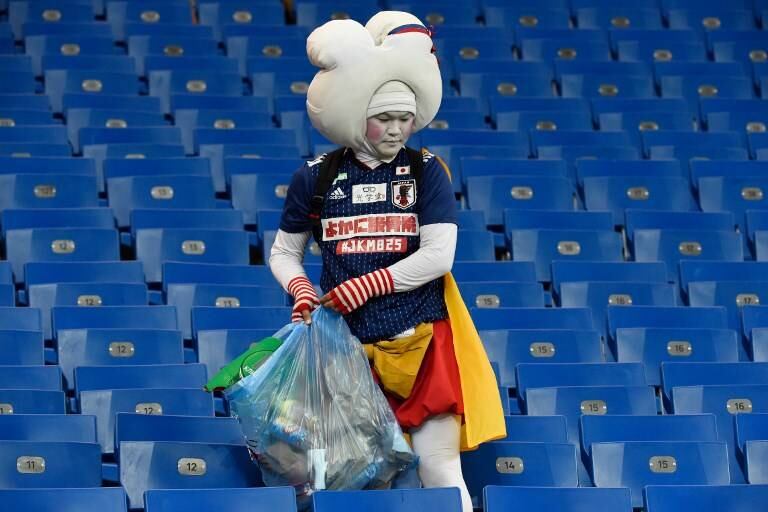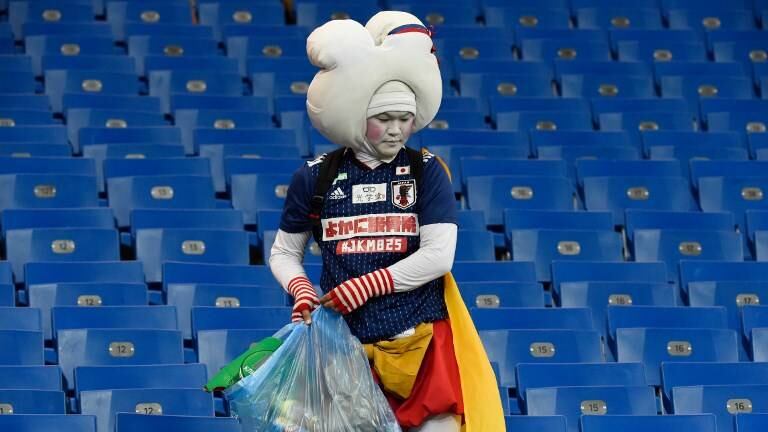 Tras finalizar el primer partido contra Colombia, los aficionados japoneses se quedaron en las gradas. Y no precisamente para alentar, sino para recoger todos los objetos que se arrojaron durante los 90 minutos.
