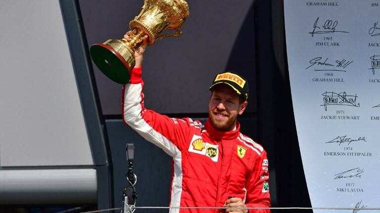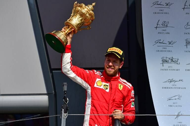 El alemán Sebastian Vettel (Ferrari) triunfó por delante del británico Lewis Hamilton (Mercedes), su principal rival en el Mundial de Fórmula 1, en un Gran Premio de Gran Bretaña con vaivenes disputado este domingo.