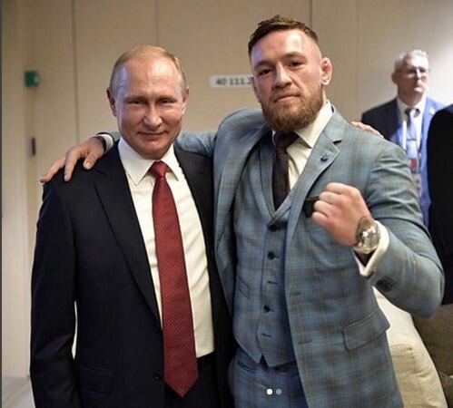 Sin embargo hubo una imagen en particular que le provocó muchas críticas a McGregor, especialmente por el texto que redacto. En la foto se puede ver al irlandés con el puño izquierdo cerrado y con su brazo derecho abrazando a Putin, quien sonríe.