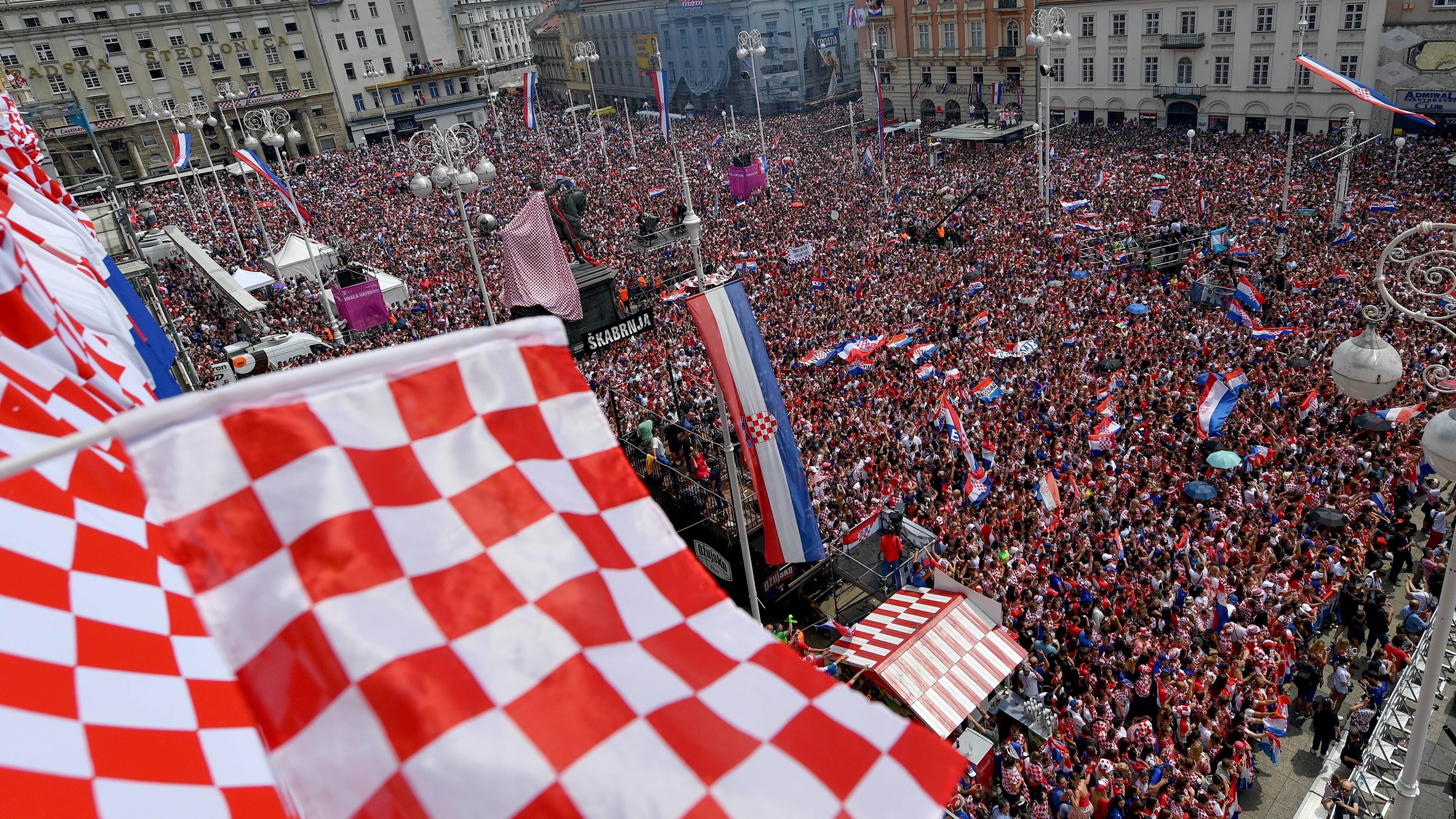 En las pantallas se ve a Modric en la pasarela del avión y la multitud que le espera en la plaza central de Zagreb lo celebra. El animador grita "Luka…" y el resto termina con un atronador "¡Modric!". Igual con "Mario… ¡Mandzukic!" o "Dejan… ¡Lovren!".