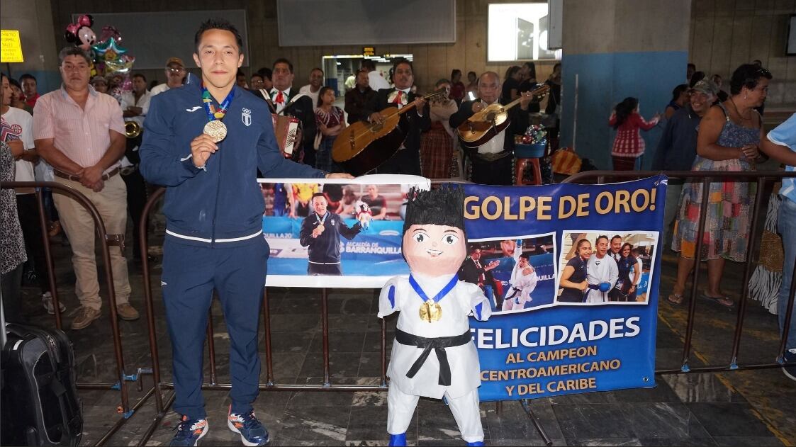 El medallista de oro Allan Maldonado vivió momentos de gran emoción cuando junto a la delegación de karate, fue recibido en el aeropuerto La Aurora con una piñata y mariachis.