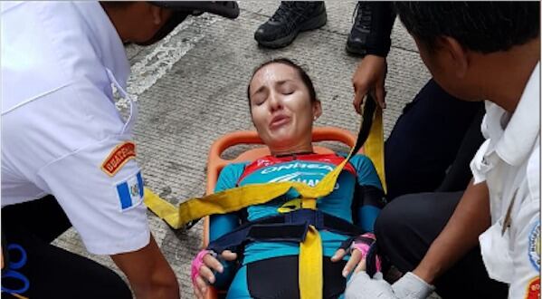 La ciclista costarricense Tatiana Romero se vio obligada a abandonar la prueba de este sábado en la Vuelta Femenina a Guatemala, luego de sufrir una terrible caída.