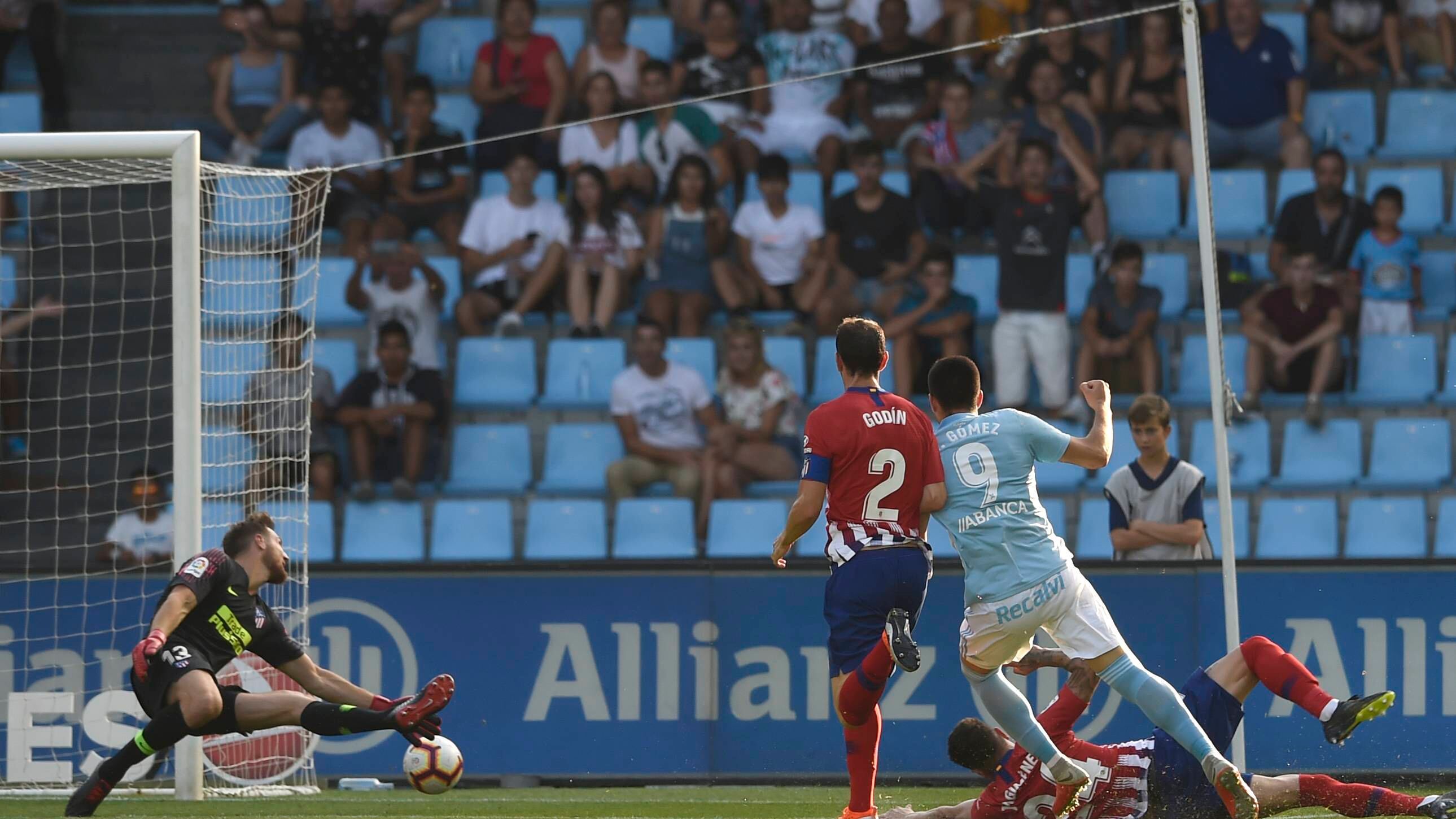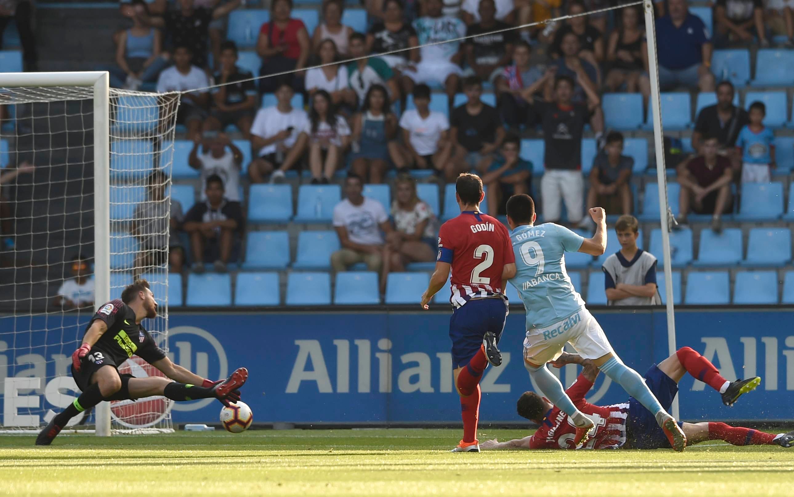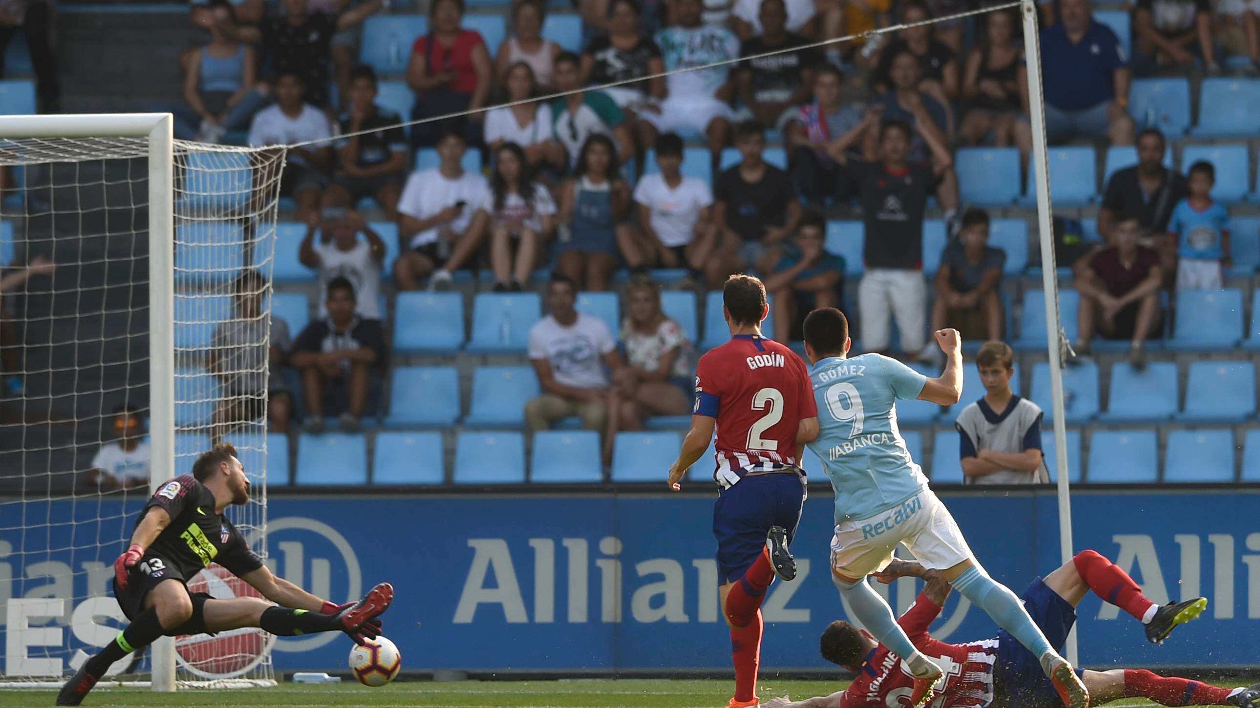 Un pase retrasado para el uruguayo Diego Godín provocó el primer gol gallego, cuando el defensa central resbaló y eso permitió a su compatriota Maxi Gómez, muy atento, hacerse con el balón e irse como un bala para terminar batiendo a Jan Oblak en el 46.