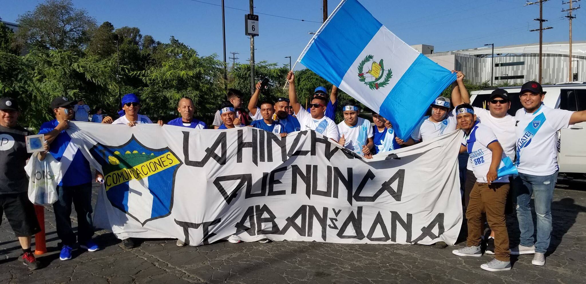 Una buena cantidad de seguidores chapines apoyan al conjunto nacional y se espera que para la hora del partido el recinto angelino esté a reventar.