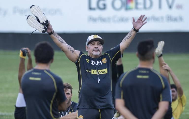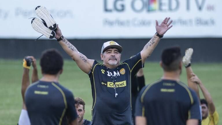 Más tarde, Maradona tenía programado, a puerta abierta para prensa y afición, su primer entrenamiento con los Dorados.