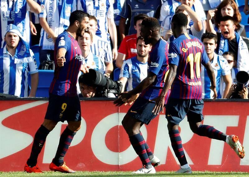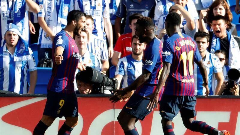 Aritz Elustondo abrió el marcador para la Real Sociedad con un remate dentro del área (12), antes de que Luis Suárez empatara (62) y Ousmane Dembélé hiciera el gol de la victoria (66).