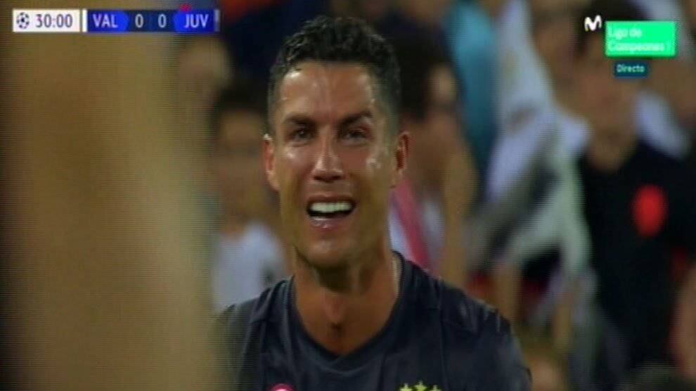 Ronaldo tuvo un encontronazo en el área del Valencia con el colombiano Jeison Murillo, al que dio un leve golpe en el pie y otro en la cabeza.