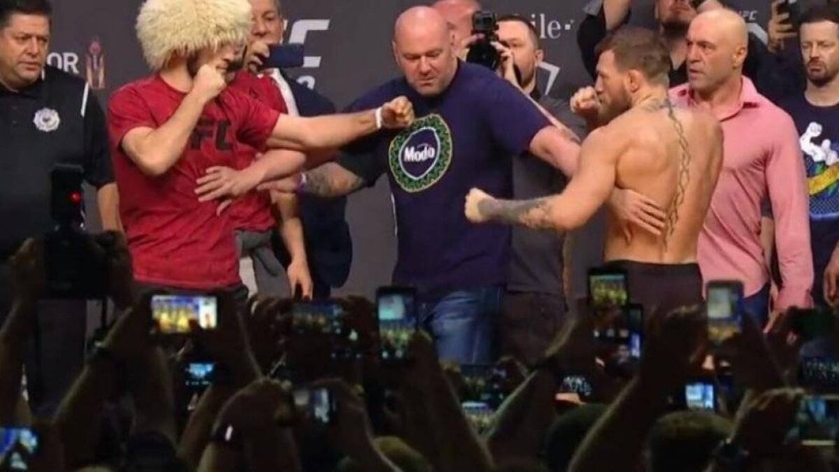 Cuando llegó el Kahbib, Dana White, presidente de la UFC lo escoltó para evitar cualquier percance antes de la pelea oficial, sin embargo, poco pudo hacer, pues el irlandés hizo de las suyas.