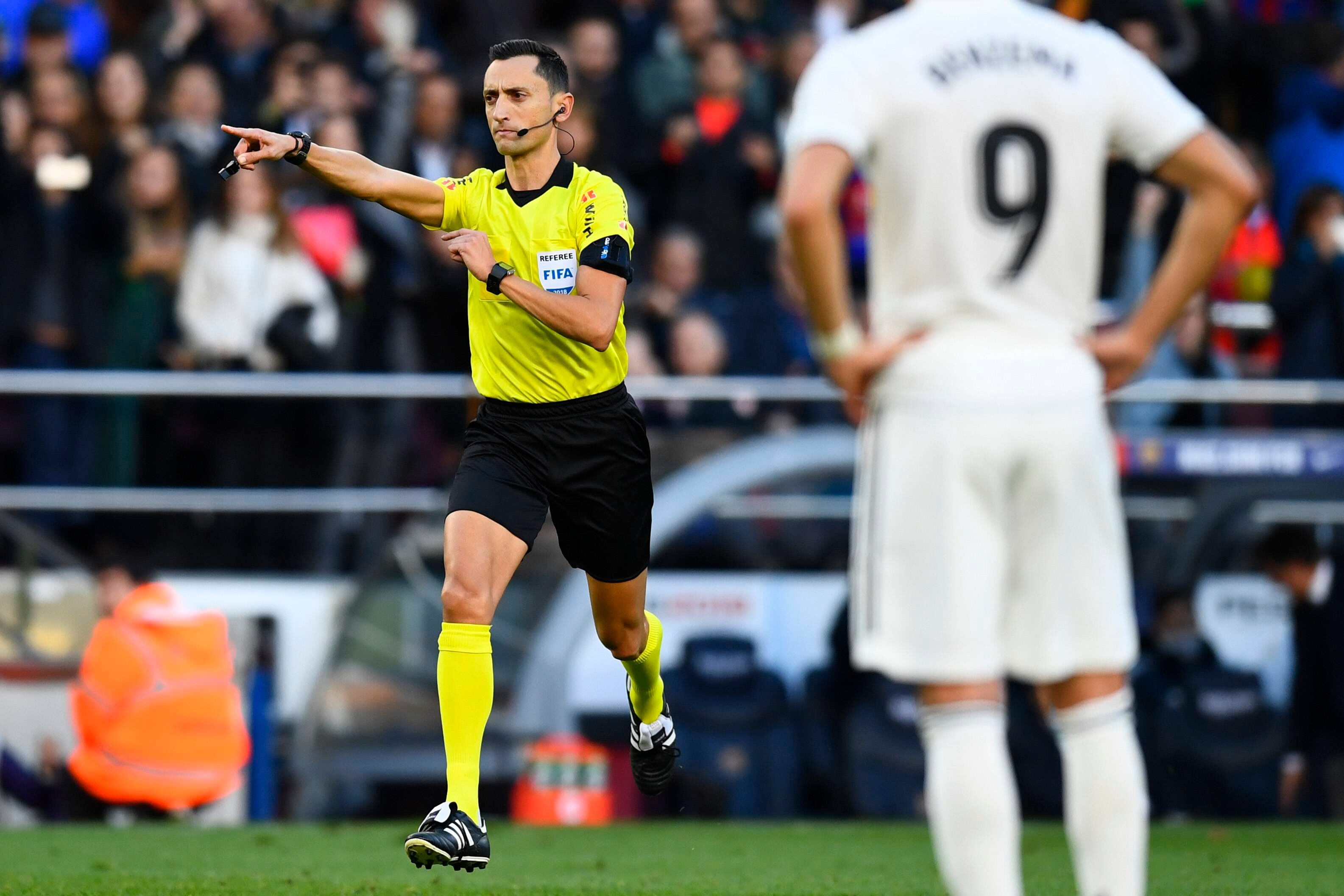 Después de consultar con sus asistentes en la cabina videoarbitraje, este tuvo que ir a la pantalla que está en el terreno de juego para revisar la jugada. Al ver la acción, el colegiado rectificó que sí existía falta y decidió marcar el penalti a favor del Barcelona.