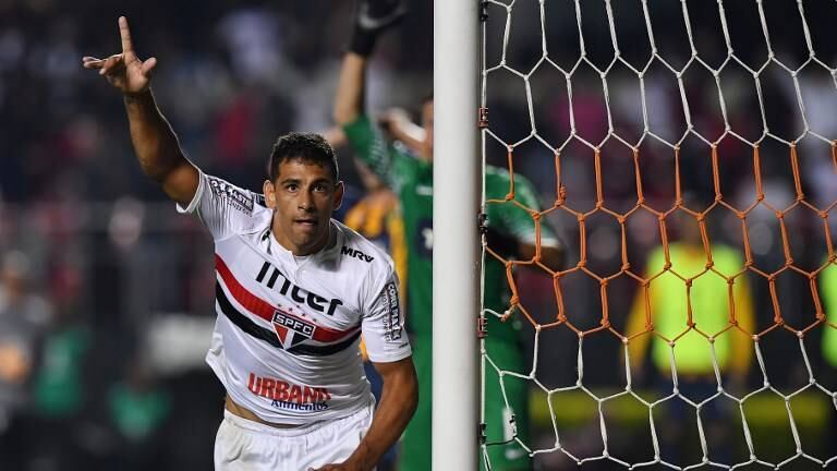 Con un saludo militar y el gesto de disparar un arma: así celebró su tanto ante el Flamengo el atacante del Sao Paulo, Diego Souza, cuya dedicatoria para el presidente electo de Brasil, el ultraderechista Jair Bolsonaro, abrió una polémica en las redes sociales.