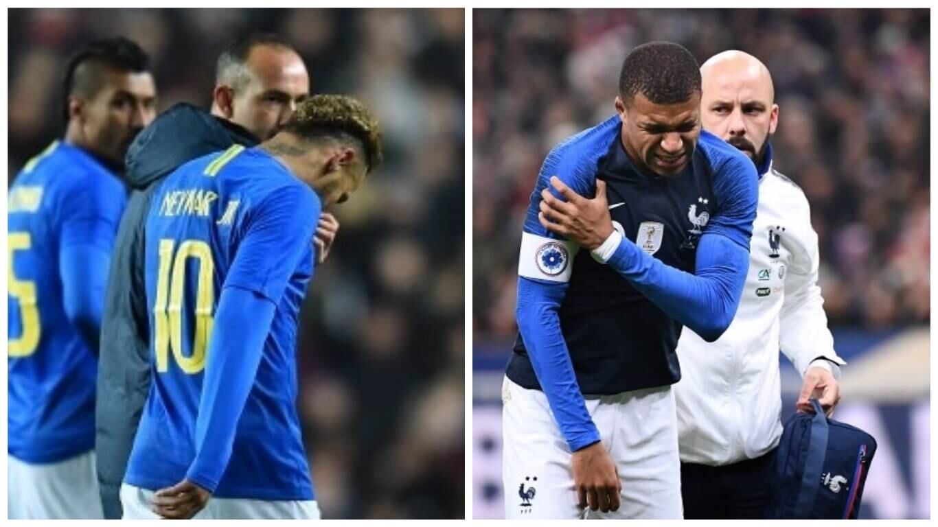 El capitán de la Selección de Brasil, Neymar y la estrella de Francia, Kilyan Mbappé, astros del PSG, encendieron las alarmas al resultar lesionados este martes.
