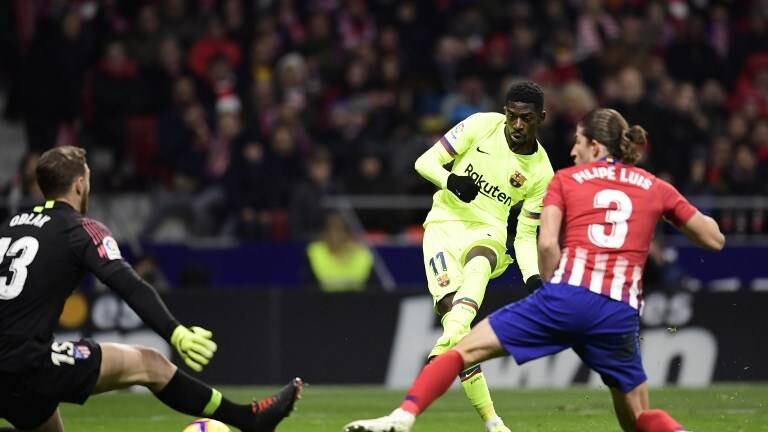 Con un gol salvador del cuestionado Ousmane Dembelé, el Barcelona, líder de la liga española, arrancó un empate 'in extremis' el sábado contra el Atlético (1-1) y conservó su primera plaza, aumentando la ventaja sobre el Real Madrid, que fue goleado por 3-0 en Eibar (8º).
